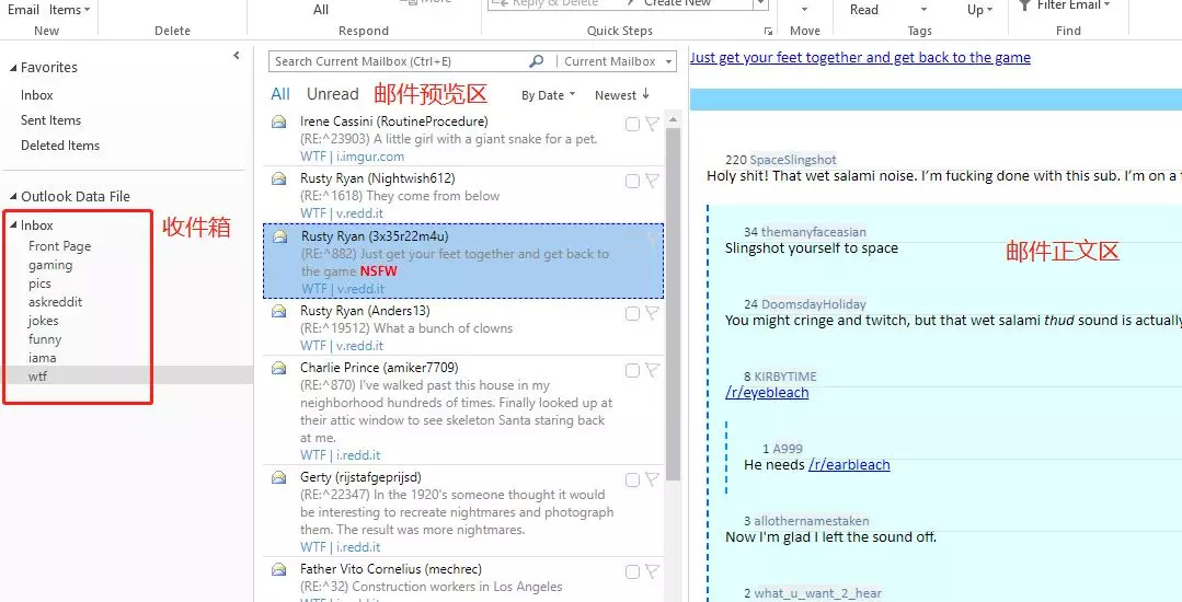 邮件预览区,实际上贴的是 reddit 的各种帖子;