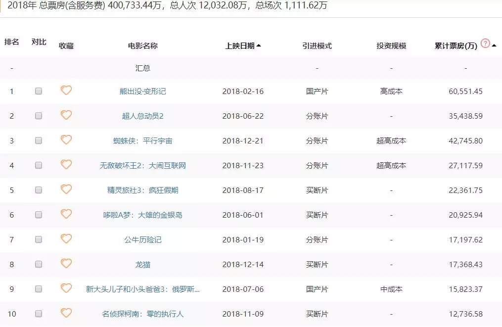 2018年动画电影票房TOP10