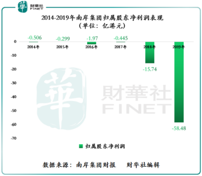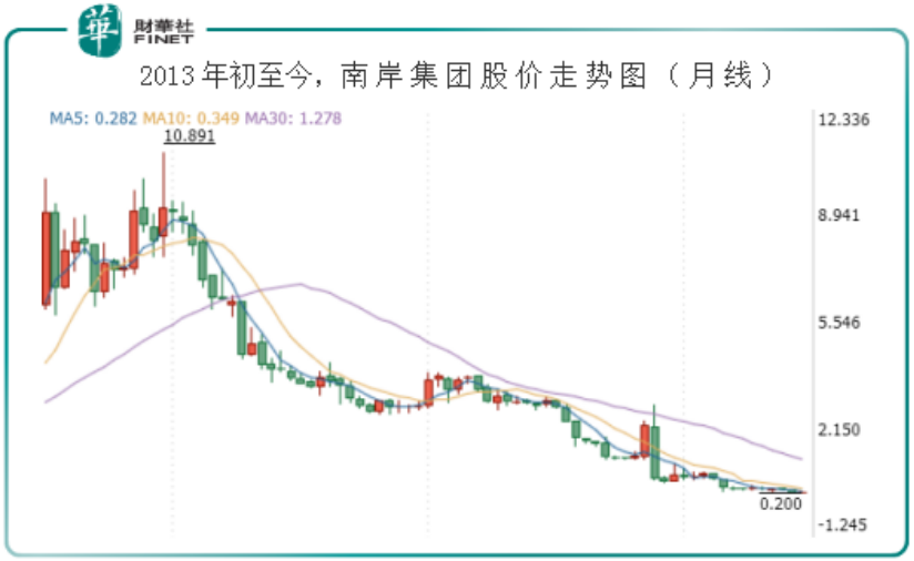 仅在2018年1月2日至2019月7月2日期间,南岸集团股价就跌逾五倍,市值蒸发约10.9亿港元。