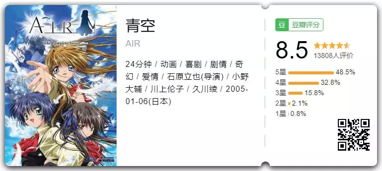 由知名游戏社KEY社作品改编,虽然现在动画画风看起来有点古早,但作为“三大催泪弹”之一,地位很高,这么多年来,还是有很多新人前来补番。