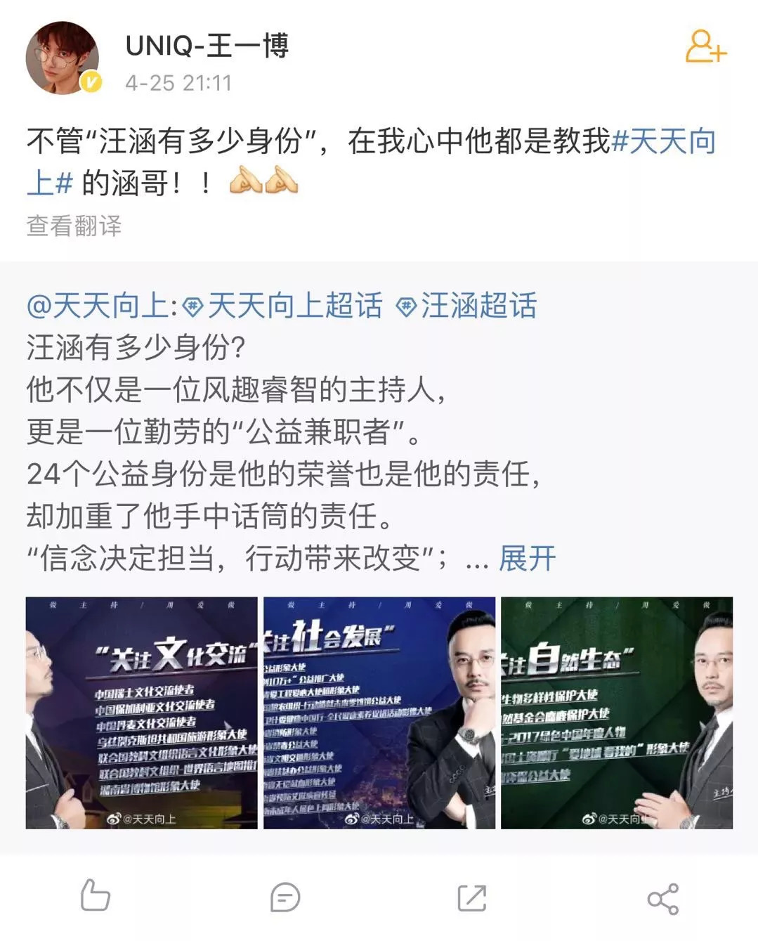 对于粉丝“连我妈都不会对我说这样的话,你凭什么说我不害臊”的委屈。硬糖君觉得实在是过分敏感了。你跟一个不混饭圈的主持人较哪门子劲?你们成了一博妈妈,那汪涵还是一博大哥呢,占便宜不要太爽。追爱豆没问题,但话术是不是也该因地制宜?