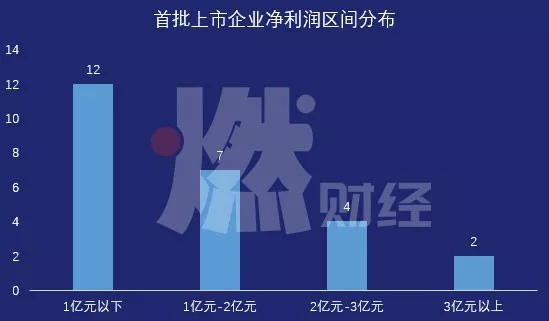 净利润在1亿元以下的有12家,1亿元到2亿元区间的有7家,2亿元到3亿元的有4家,3亿元以上的有2家。