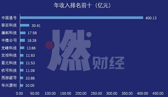 在营收规模上,按2018年的营收计算,这25家公司的年收入分布在2亿元至400亿元区间。年收入最高的是中国通号,这家公司2018年的营收为400亿元,是其他24家公司总营收之和的2倍。年营收最低的是新光光电,它2018年的营收只有2亿元。