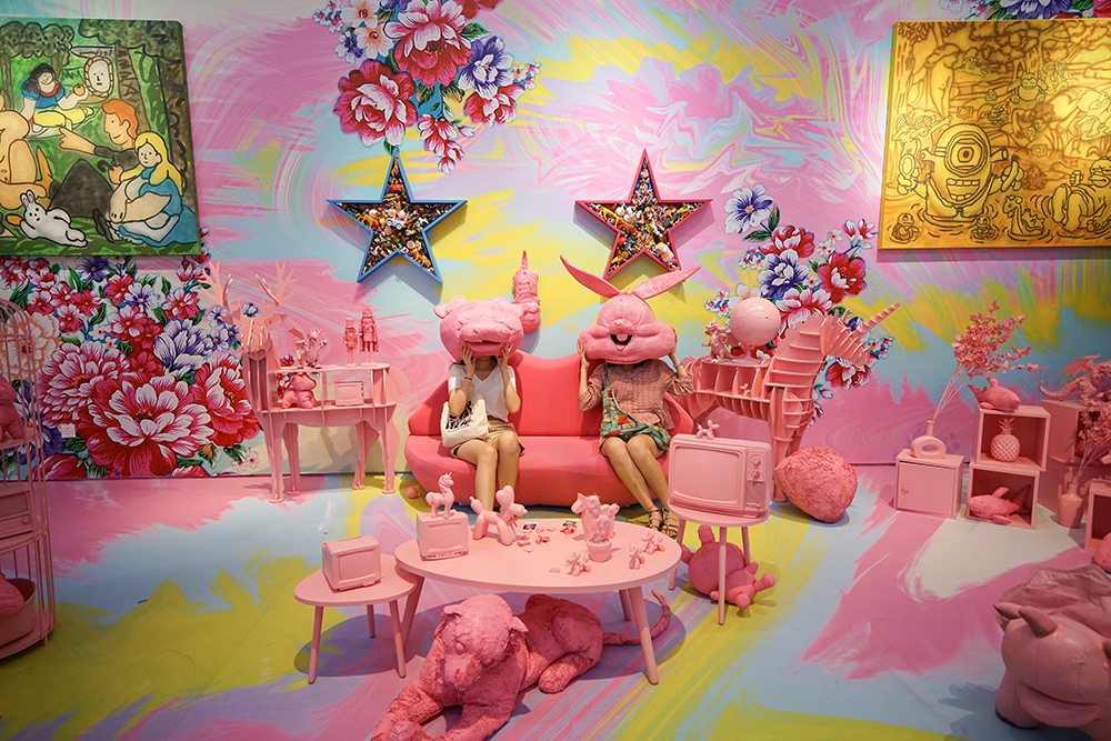 艺术家们对当下的快速消费社会、流行文化、艺术和时尚做出各自不同的解读或调侃,通过丰富的材料和呈现形式,构建出物理和心理层面上的空间,打开了一个新的观看角度。
