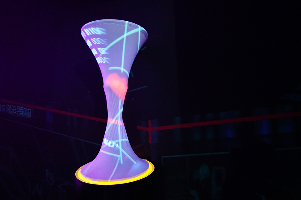 光影、音频是一种无形的媒介,在《制造之外》展览中,它们也许是一种VR影像,也许是心脏跳动的声音,能被看见,也能被听到。在这里,真实空间与光影世界重叠,虚拟和现实之间仅存一步之遥。