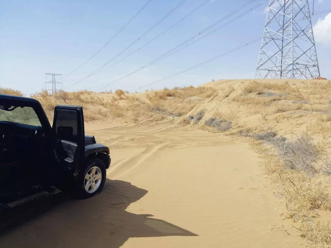 与大多数人一样,在此之前,我的知识库里也仅有“快走沙慢过水”这样的基本理论,但沙漠里的危险在于无法预估每一个沙脊背后的状况,一旦迎接你的是深坑(当地人称鸡窝坑),速度稍快轻则腾空重则翻车,而速度稍慢和犹豫,便会如同我们一样,车底卡在了沙脊上,即便是离地间隙非常优异的牧马人,也难逃“沙漠搁浅”的尴尬。因此,如果想去往沙漠浪迹,一定要有其他车辆陪同,当你陷车之后,可靠的盟友显得无比重要,否则在这种没有信号的沙漠里,一人一车的无助和绝望一定是你终生难忘的记忆。