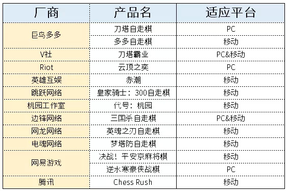 如今,游戏市场上已经出现了许许多多的自走棋产品,在此矩阵特意列了一个名单: