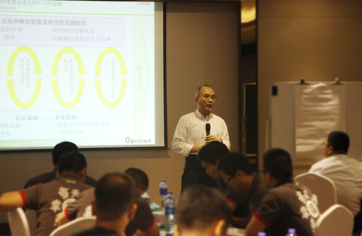 开营仪式后,7-Eleven前常务董事碓井诚以《7-Eleven事业战略与PB商品开发,单品管理方法》的大主题演讲。其中,近一天的时间内,集中解答了三个大问题:1、零售业为应对环境变化所做革新及7-Eleven战略;2、PB商品开发的方法和单品管理方法;3、7-Eleven的IT系统及服务体系。