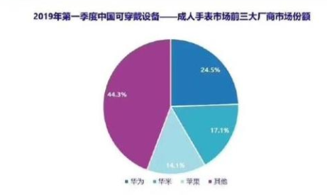在国内市场苹果的市场份额也被反超,IDC所公布的2019年Q1国内可穿戴设备-成人手表市场占比数据显示,华为以44.3%的市场占有率遥遥领先,而华米则超过苹果以24.5%成为第二。