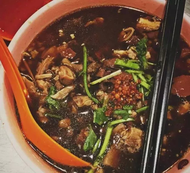 还有加了各种草药的肉骨茶,也让外国人退避三舍。汕头街的肉骨茶分干、湿两种,干肉骨茶类似于广东的啫啫煲,浓油赤酱,有淡淡的药味。