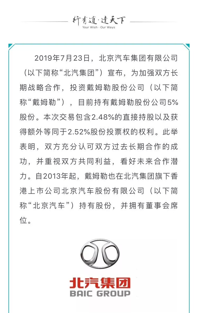 商业利益捆绑,北汽与戴姆勒交叉持股