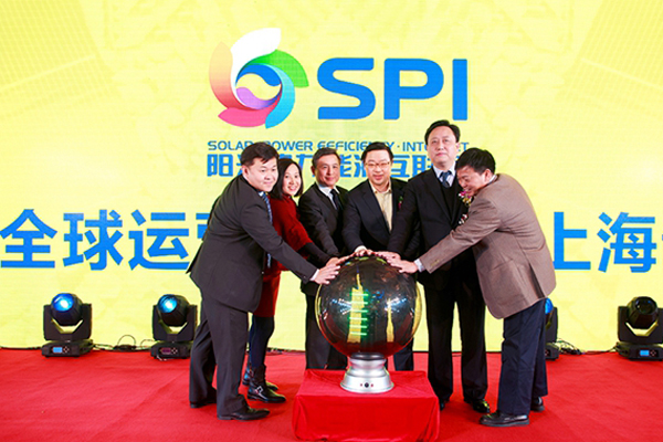 图注:彭小峰(右三)和SPI高管及上海市普陀区政府领导一起启动绿能宝平台