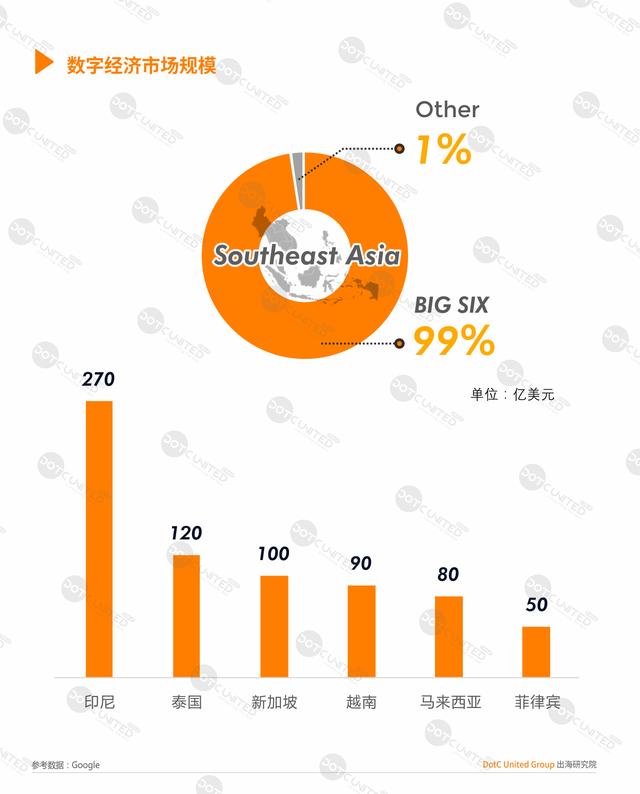 东南亚总人口超过6.5亿,包括11个国家,各国之间经济状况、语言、文化风俗、宗教信仰、互联网基础建设等不尽相同,从移动互联网发展的成熟度以及规模来看,印尼、泰国、新加坡、越南、马来西亚、以及菲律宾为东南亚六大市场。