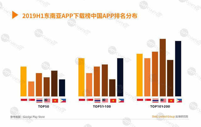 对比东南亚六国下载榜APP国家分布显示,基本呈现中国、美国和本土的基本布局。