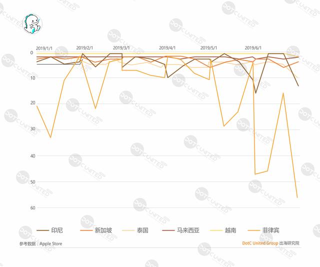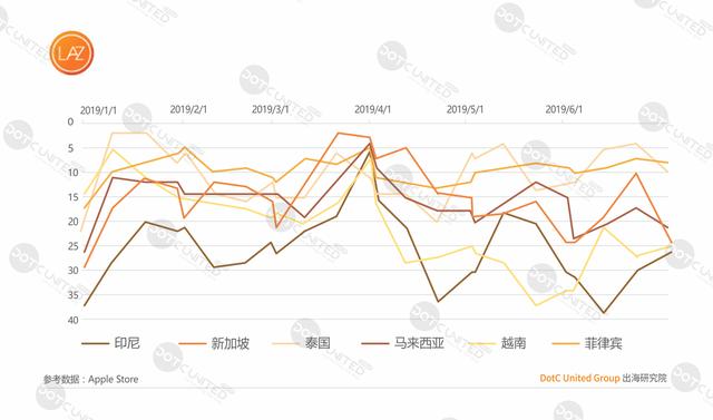 Lazada是东南亚电商市场巨头,2018年阿里资本的参与给了Lazada平台的商户及用户很大的信心并产生了至关重要的引流。Lazada平台成熟的API接口以及迅速高效的客服是其核心竞争力所在。2019年上半年,Lazada在东南亚六国iOS日下载榜单都保持在TOP40内,尤其在泰国和新加坡表现最好,基本保持TOP20内的排名。