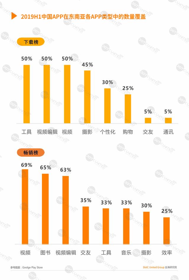 4.目前,国内APP在工具、直播、短视频、图书、视频流媒体、视频编辑和摄影类数量覆盖东南亚地区各类型超50%以上市场份额,直播、短视频、音乐流媒体、图书类产品或是变现利器。