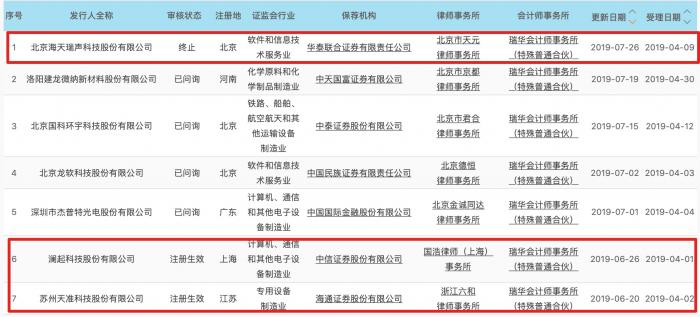 公开资料显示,7月26日晚北京海天瑞声科技股份有限公司终止科创板上市申请,其审计机构正是瑞华所。