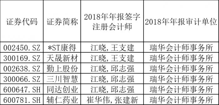 21世纪经济报道记者梳理发现,*ST康得和辅仁药业2018年年报签字注册会计师也为多家上市公司提供了审计服务。