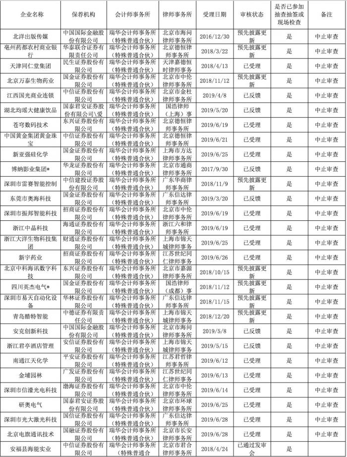 当晚,根据证监会官网披露的IPO排队审核企业进展,瑞华会计师事务所参与审计IPO项目共29单,除安福县海能实业在当天已经拿到IPO批文以外,另外28单项目全部“中止审查”,占排队数量的6%。