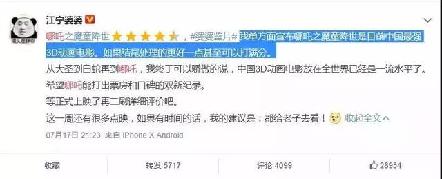 《哪吒》的自来水安利分为大V和大众两个方面。