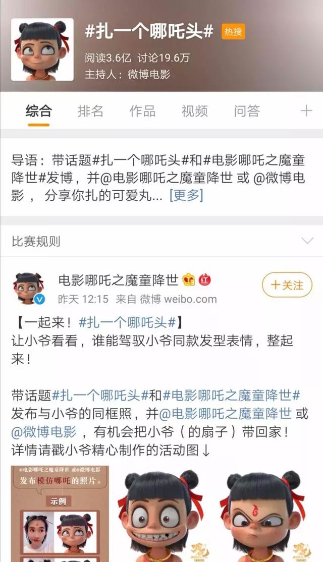 7月23日,官微放出哪吒、大圣归来联合短片,“哪吒是男孩子吗”的话题再次登上热搜,将粉丝对比大圣归来融入一个片段中,再次达到了为《哪吒之魔童降世》造势的效果。