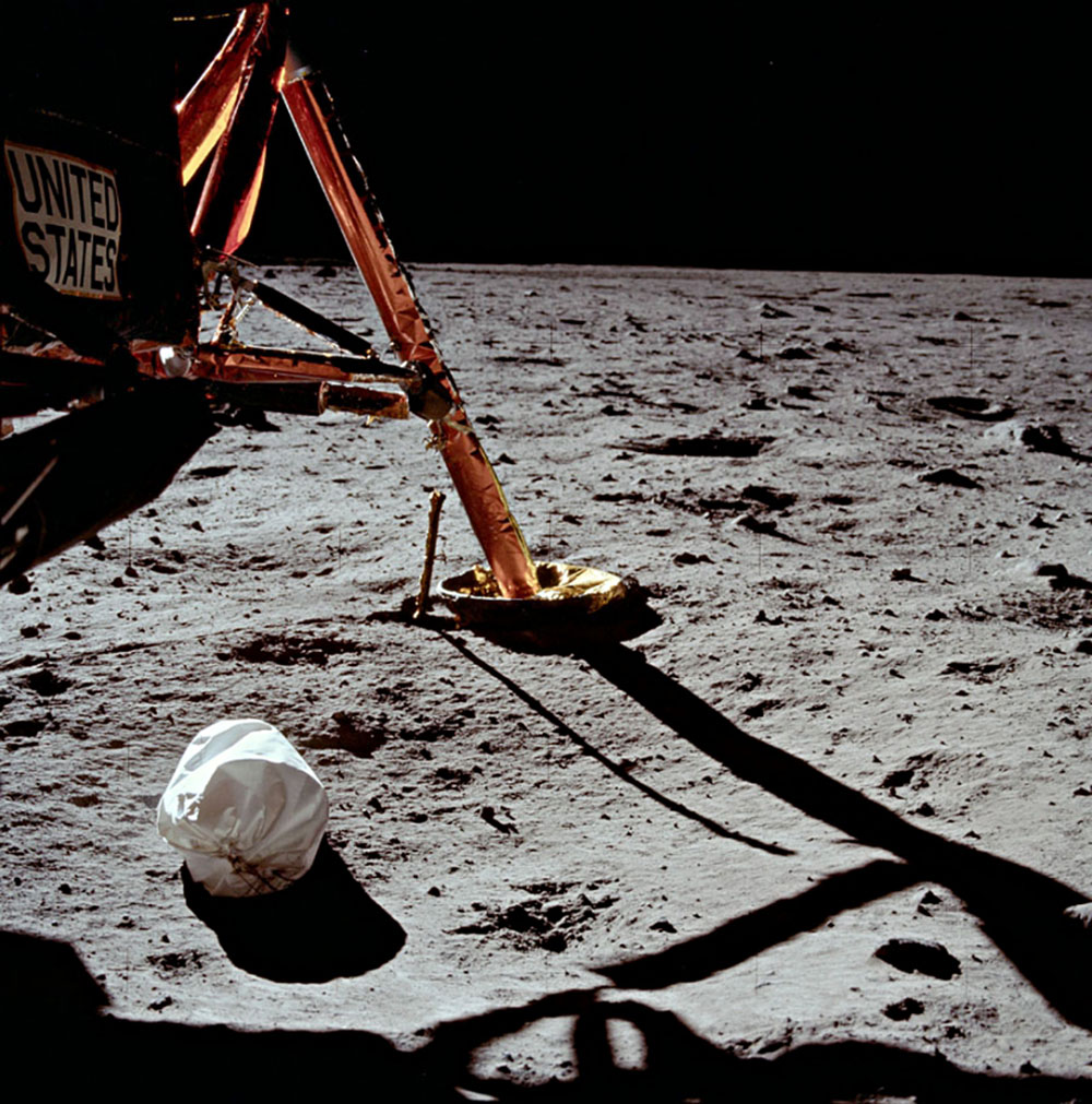 有人的地方,就会有垃圾产生。根据美国太空总署NASA网站上的资料,由于太空舱的空间狭小,太空人必须严格控制太空船的载重,他们执行月球任务清单上的第一项,就是把所有废物丢弃,以确保顺利回到地球。尼尔·奥尔登·阿姆斯特朗(Neil Alden Armstrong)作为首位登上月球的人类,他拍下的第一张照片就是来自地球的垃圾袋,而这一袋垃圾无疑是人类登月后的第一袋垃圾。