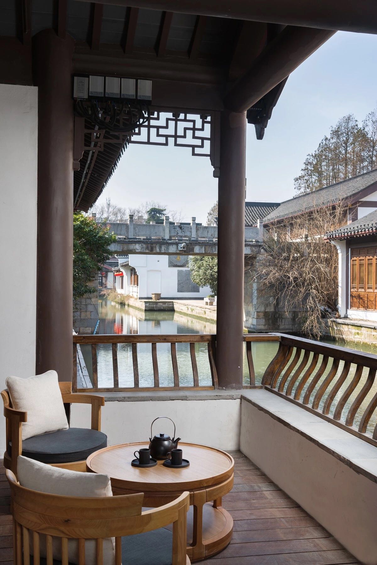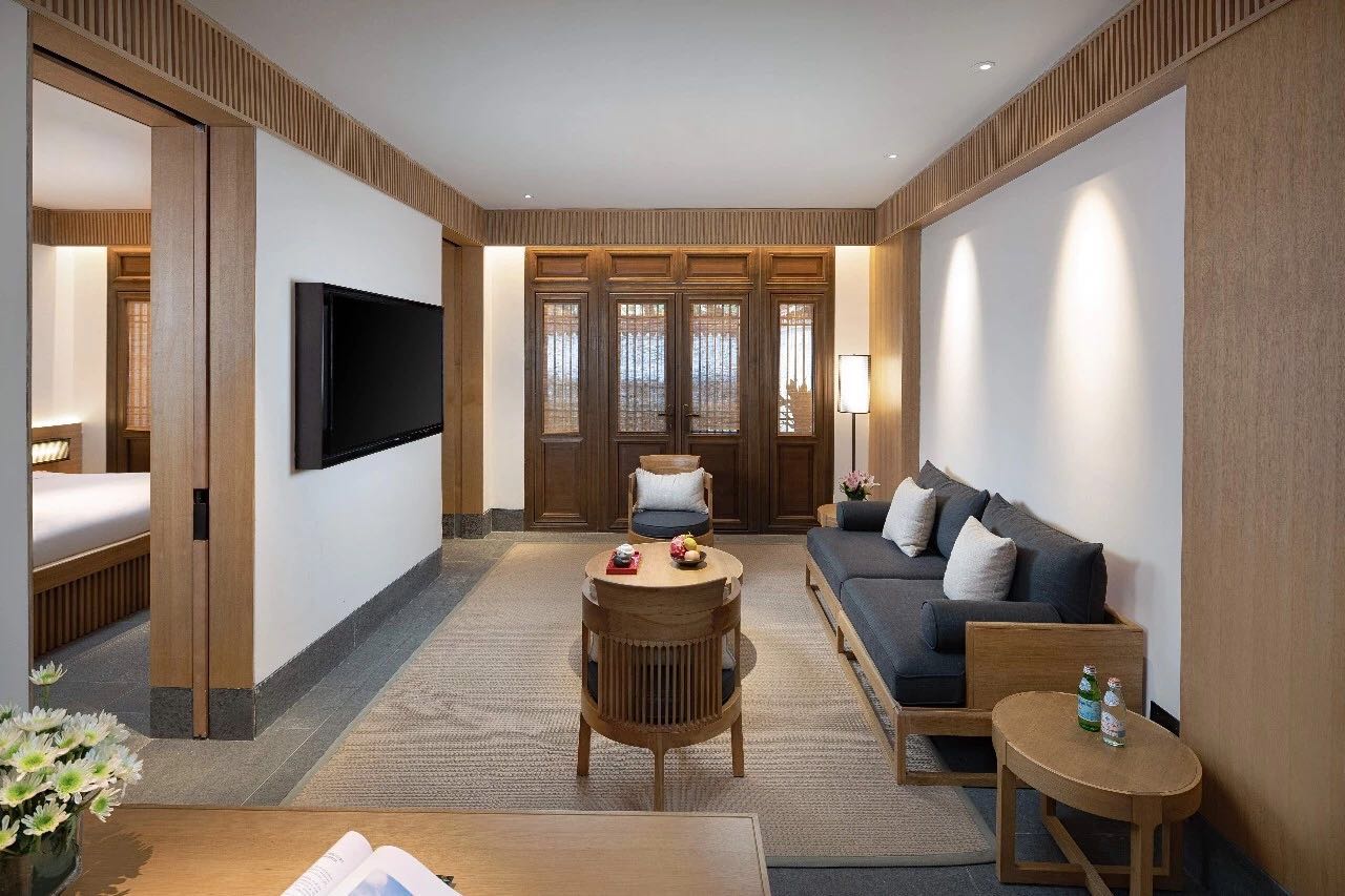 隐逸水街拥有河景、园景等多种景观与格局的客房,建筑上保留了老建筑的风貌。内部拥有河景、园景等多种景观与格局的客房。客房中配备了美国舒达床垫,铺以埃及长绒棉床品,中央空调与地暖也是标配。