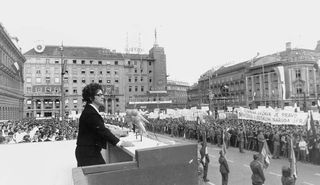 尽管如此,社会主义教育并非完全没有效果,各地民众都有过英勇反对内战的行动,但最后都杯水车薪。1992年4月5日波斯尼亚战争爆发前夕,大批反感于种族煽动的萨拉热窝各族市民,游行呼吁和平,期间占领国会,抗议总统阿利雅·伊泽特贝戈维奇推行其穆斯林多数主义,并冲击邻近的塞族领袖拉多万·卡拉季奇 (Radovan Karadžić)的总部,最后被塞族枪手枪击而四散。实践学派内忠于左翼的米拉丁·日沃基奇 (Miladin Zivotic) 与米洛万·吉拉斯一道推动和平运动,试图斡旋波斯尼亚冲突,并捍卫科索沃穆斯林,直到1997年在忧愤中去世。米洛舍维奇清洗科索沃的行动造成北约连月空袭和大量士兵伤亡,酿成极大民怨。他的支持基础主要是中老年人,而于南斯拉夫社会主义下成长的年轻人,则对他愈加反感。塞尔维亚恶性通货膨胀达到每月3亿1300万%,物价翻倍只需要34小时。2000年,米洛舍维奇被指操控选举;10月5日,“抵抗”(Otpor) 青年运动和反对派群众七万人兵分五路进攻贝尔格莱德,推翻米氏政权。十年河东十年河西,国会大楼前聚集的愤怒民众不再如1989年般,要求米洛舍维奇惩罚科索沃,而是要打倒米洛舍维奇自己。