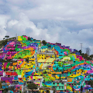 为了使整个社区更加团结,你能想出什么好办法?墨西哥政府找到的解决方法之一是请一队涂鸦艺术家(Germen Crew)将社区里所有的房子漆成了彩虹。
