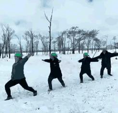张北的冬天,室外温度能达到零下二十多度。即便是冬天下雪了,他们还是会继续练习,戴个手套在雪地里倒立。