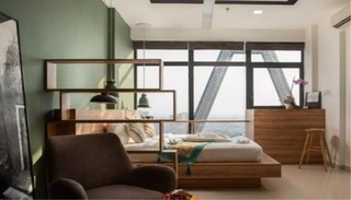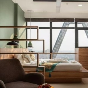 而客房的整体设计更是独特,全景落地窗外三河汇聚成汪洋的壮阔景观,如果不是身临其境,真的无法真正感受那那份震撼。客房中间采用置物架做了一个隔断,营造出了更好的空间感,而且非常实用。靠近窗户的一面是榻榻米一样的床板和实木桌,既可以工作也可以休息,旁边精巧的吧台到了夜晚氛围十足,兴致来了可以和朋友品一杯红酒,欣赏夜景。