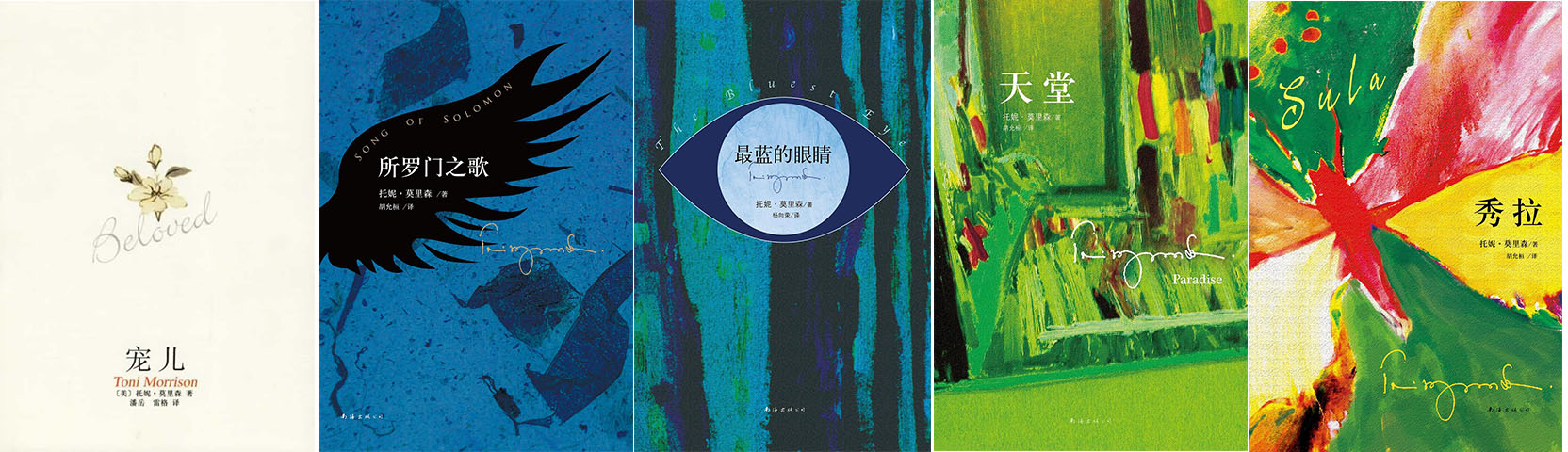 在写作《最蓝的眼睛》期间,她在纽约兰登书屋担任高级编辑,出版了拳王穆罕默德·阿里与一些青年黑人作家的作品。1973年,她出版了讲述两个黑人女性之间友谊的作品《秀拉》,并获得了当年的美国国家图书奖提名。1977年的《所罗门之歌》则让莫里森获得了全国性的声誉,这本书以“黑人会飞”这则古老的民间传说为故事主线和象征核心,讲述了北方城市一个富裕黑人家庭的小儿子奶娃南行故土寻找金子,从而意外找到家族之根和文化之源的经历。1983年,莫里森从兰登书屋辞职,专注写作。