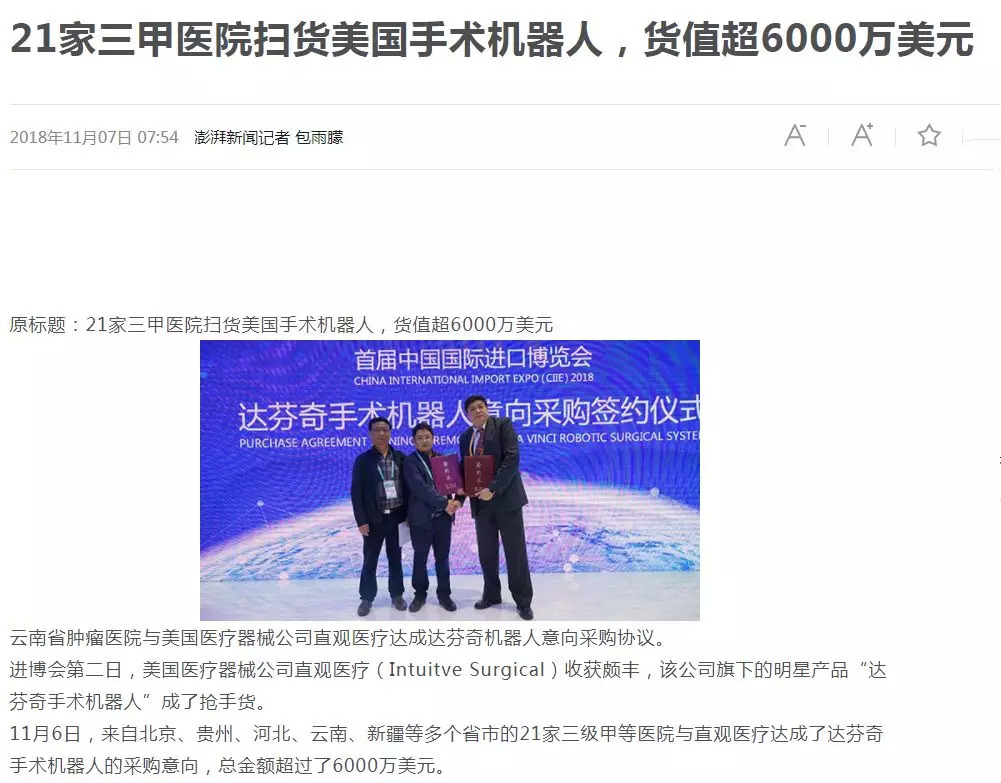 去年进博会期间“达芬奇”受国内医疗机构热捧
