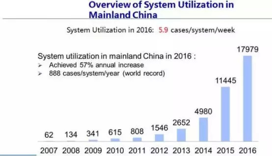 中国地区达芬奇机器人的手术量,连年大幅增长