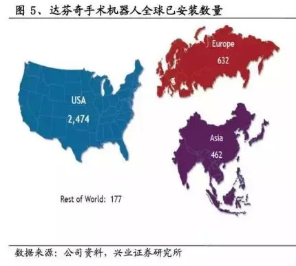 截至2017年6月,全球共有4149台达芬奇,亚洲的数量占13%