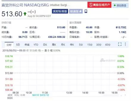 2000 年上市之际,直觉公司的股价才合每股9美元,可是到了2018年,直觉公司的股价最高时达到了574美元,市值超过600亿美元。年均上涨40%,回报率甚至超过了大名鼎鼎的谷歌。