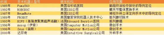 全球最早开发出手术机器人的几家公司,绝大多数都在美国