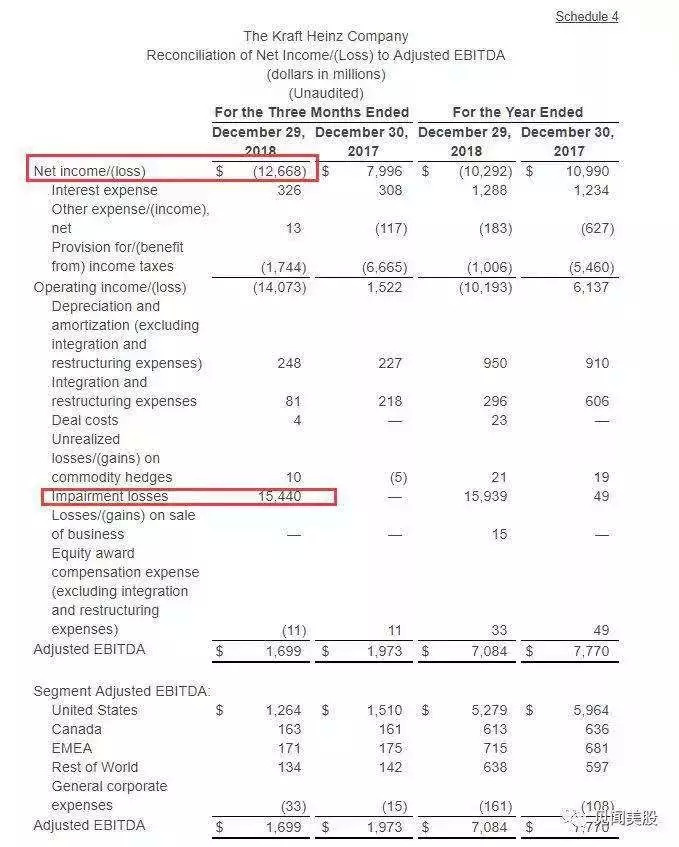 受商誉减值的影响,卡夫亨氏去年四季度归属普通股股东的净亏损达到126.08亿美元,降幅高达257.6%;每股摊薄亏损10.34美元。