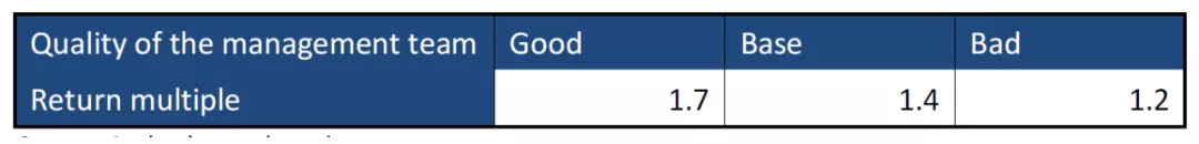 此外,还要综合考虑基金的类型、规模等,对GP进行同类比较。允许的情况下,还应进行市场调查,以推算合理的预期回报倍数。比如: