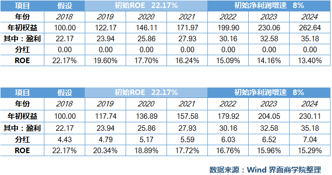据历史数据,过去两年伊利的ROE稳定在22%,未来5年的要求是15%,看似具有比较大的安全垫,但是实际测算结果却并非如此。