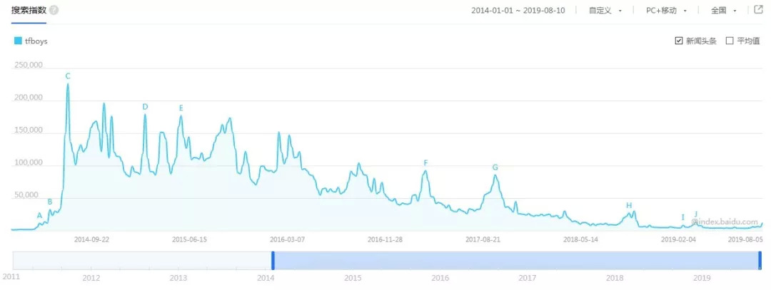 2014年的《快乐大本营》前后至今是TFBOYS的百度指数峰值