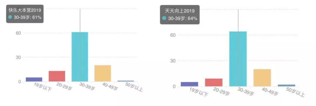 《天天向上》和《快乐大本营》的受众群体中,30-39岁的受众群体占比较高