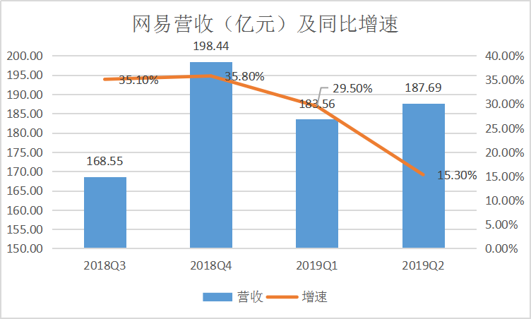 第二季度,网易营收为187.69亿元人民币,同比增加15.3%;净利润为30.71亿元人民币,同比增长45.8%,各个业务板块营收也均实现了两位数的增长速度。具体的成果大概可以用媒体多用的“游戏电商稳中有进,创新业务价值彰显”这句话来概括。