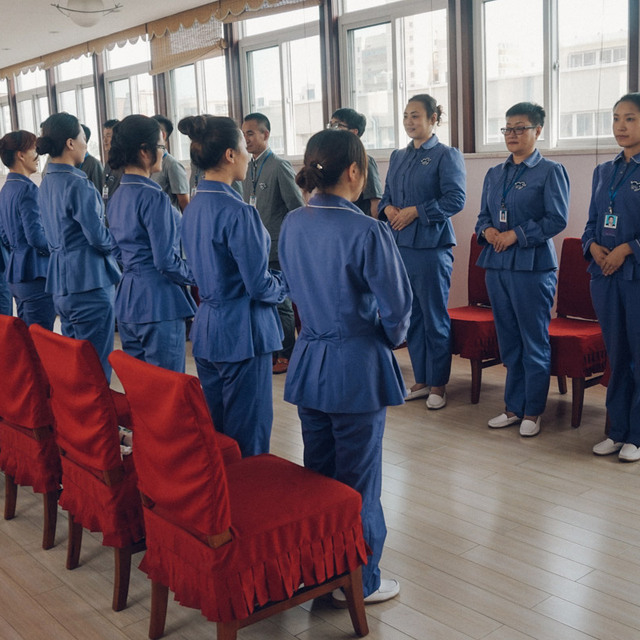我提出希望采访一位正在接受培训的学员,老师首先向我推荐了李桂敏。显然,在这所学校,老师对她青眼有加,并称她是这一期的学员代表。当她推门进来的时候,她首先向我们鞠躬,弯腰的幅度恰当地显示了礼节,又不会让人觉得过分。她化了淡妆,头发在脑后梳了个马尾,显得很精神。我们交谈的间隙,李桂敏会在杯中的水快要喝完的时候,走到身旁,及时添茶。不说话的时候,她就坐在旁边微笑地注视着你。
