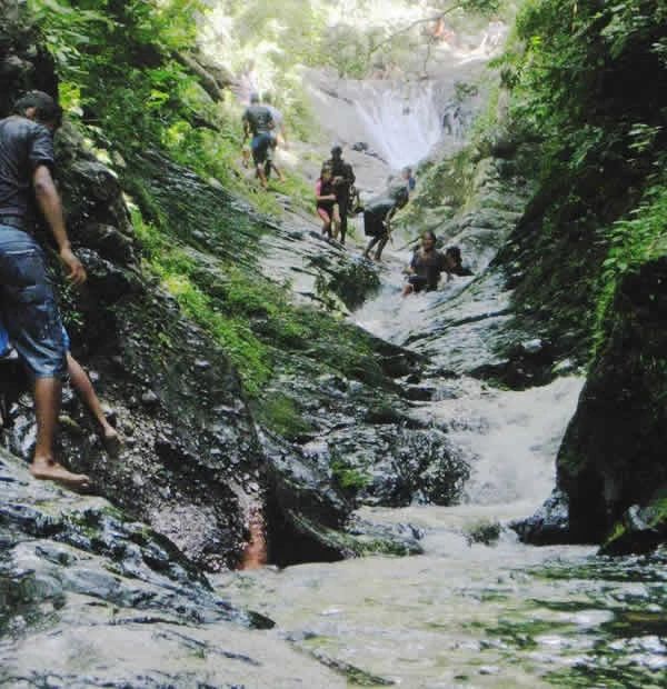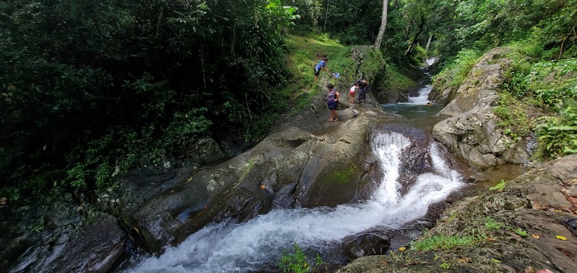 让我羡慕斐济群众和水的亲昵的,还有“滑水”的经历。去目的地Waitavala Natural Rock Waterslide的路上,我在猜测“滑水”到底怎么玩,等到了地方,已经有一家五口在那里嬉戏,看他们玩耍,被touch到了——真的是滑水,像滑滑梯一样坐在顺势而下的水里,由它和重力带着你滑往下游。