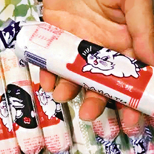 “大白兔雪糕,小时候的味道”,这是北京热门旅游景点南锣鼓巷的商贩们写在冰柜上的广告,冰柜里是包装纸和形状和“大白兔奶糖”一样的雪糕,从外形看可以说是“大白兔奶糖”的等比放大版。与此同时,新浪微博上也有众多网友晒出了大白兔奶糖雪糕的照片,称这是“口味介于双棒儿和雀巢牛奶棒”之间的雪糕,并对这种奶糖陪伴自己度过的美好童年进行了一番回忆。