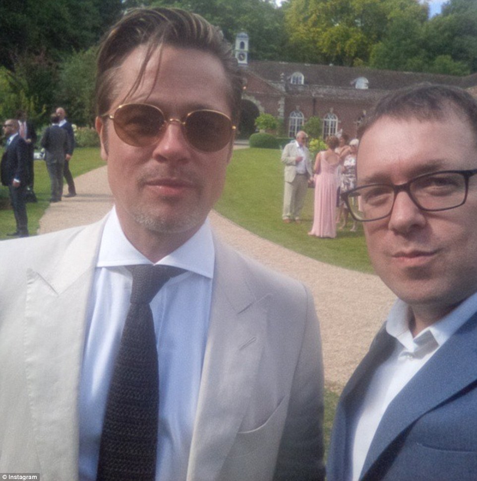 51岁的国际影星皮特出现在婚礼现场的照片也上传到了社交网络,他曾在2000年与盖·里奇合作拍摄了电影《偷拐抢骗》(Snatch),照片中他戴了一副复古的眼镜,身穿奶油色套装,帅气依旧。