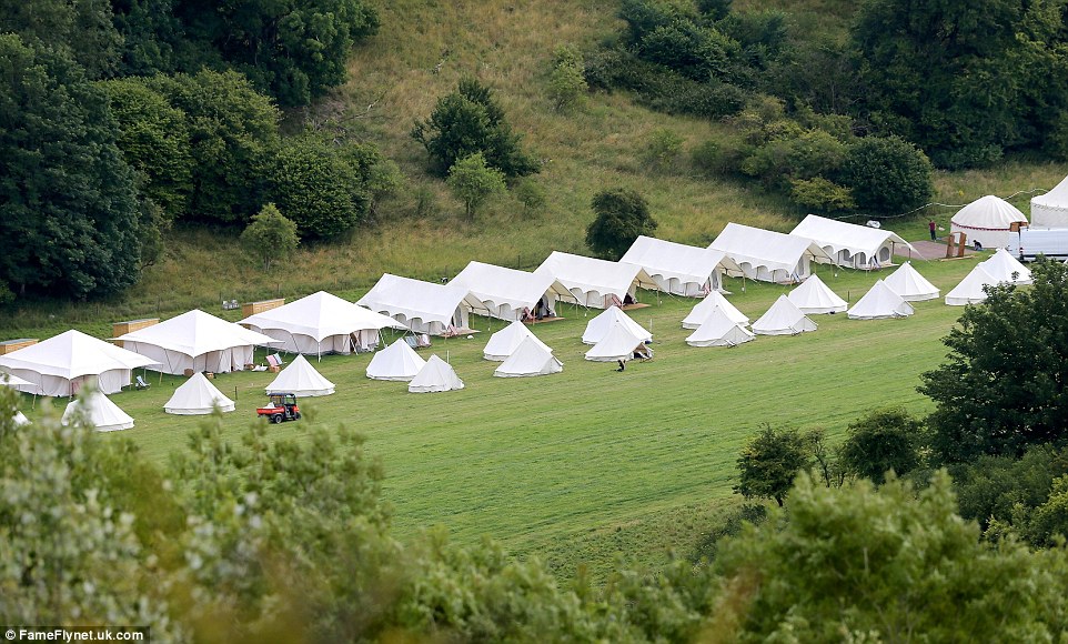 节日庆典:这几排大大小小的白色帐篷由工人赶在他们婚礼之前早早建好。