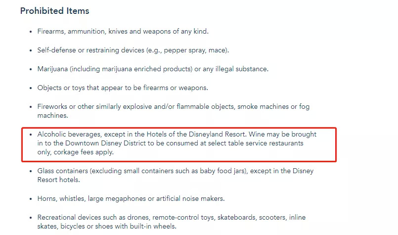 欧美的三个乐园仅规定禁止携带酒精饮料入内。