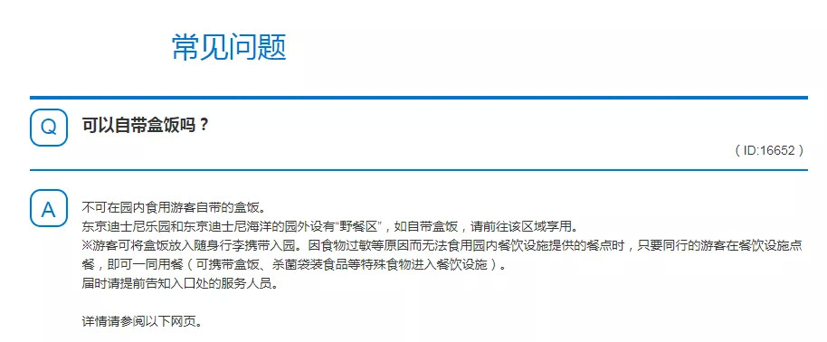 然而,东京迪士尼乐园在入园常见问题中又有这样明确的问答回复: